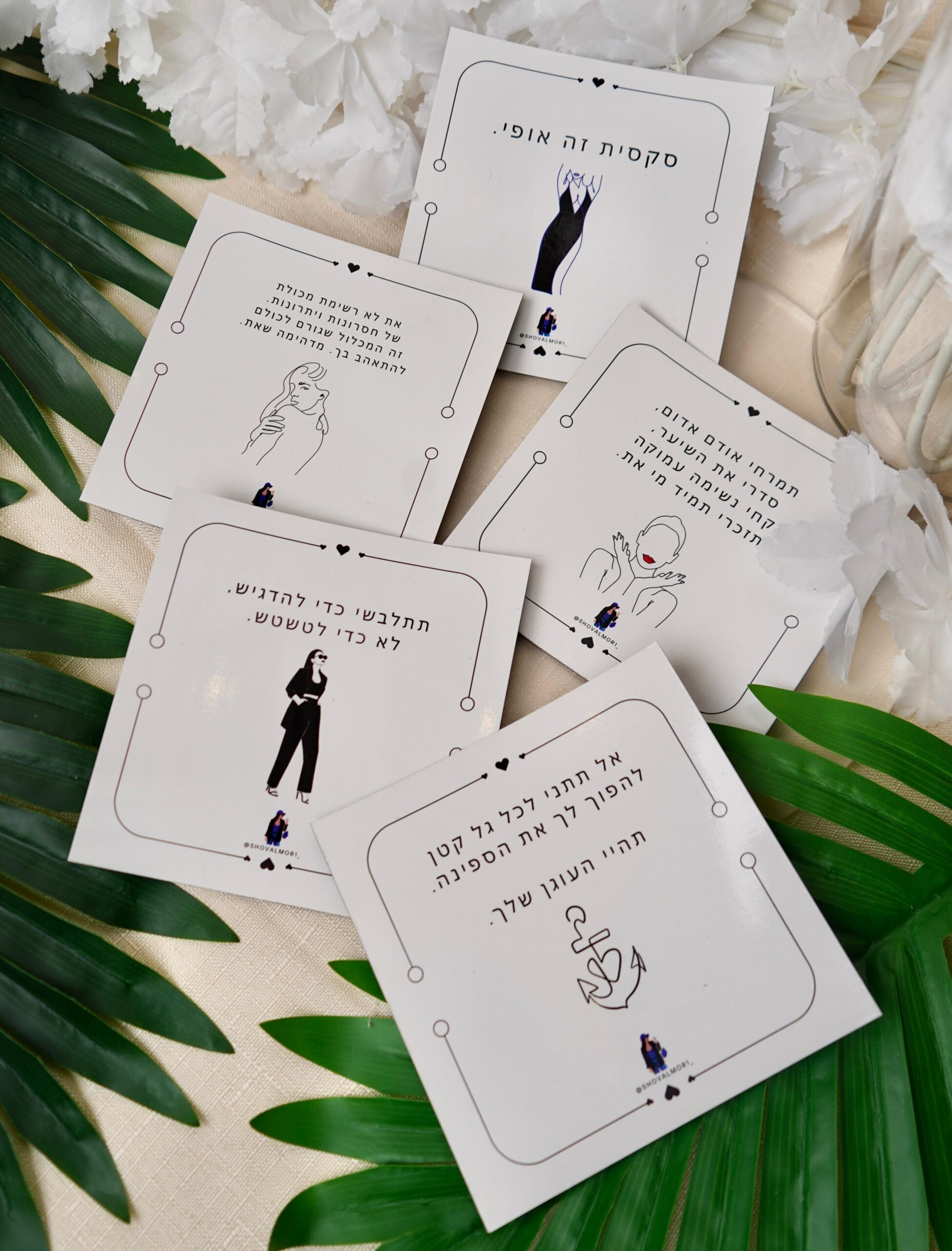 5 מגנטים בגודל 10×10 ס”מ עם משפטי השראה מקלפי שומעת רגע (נבחרים באקראי).