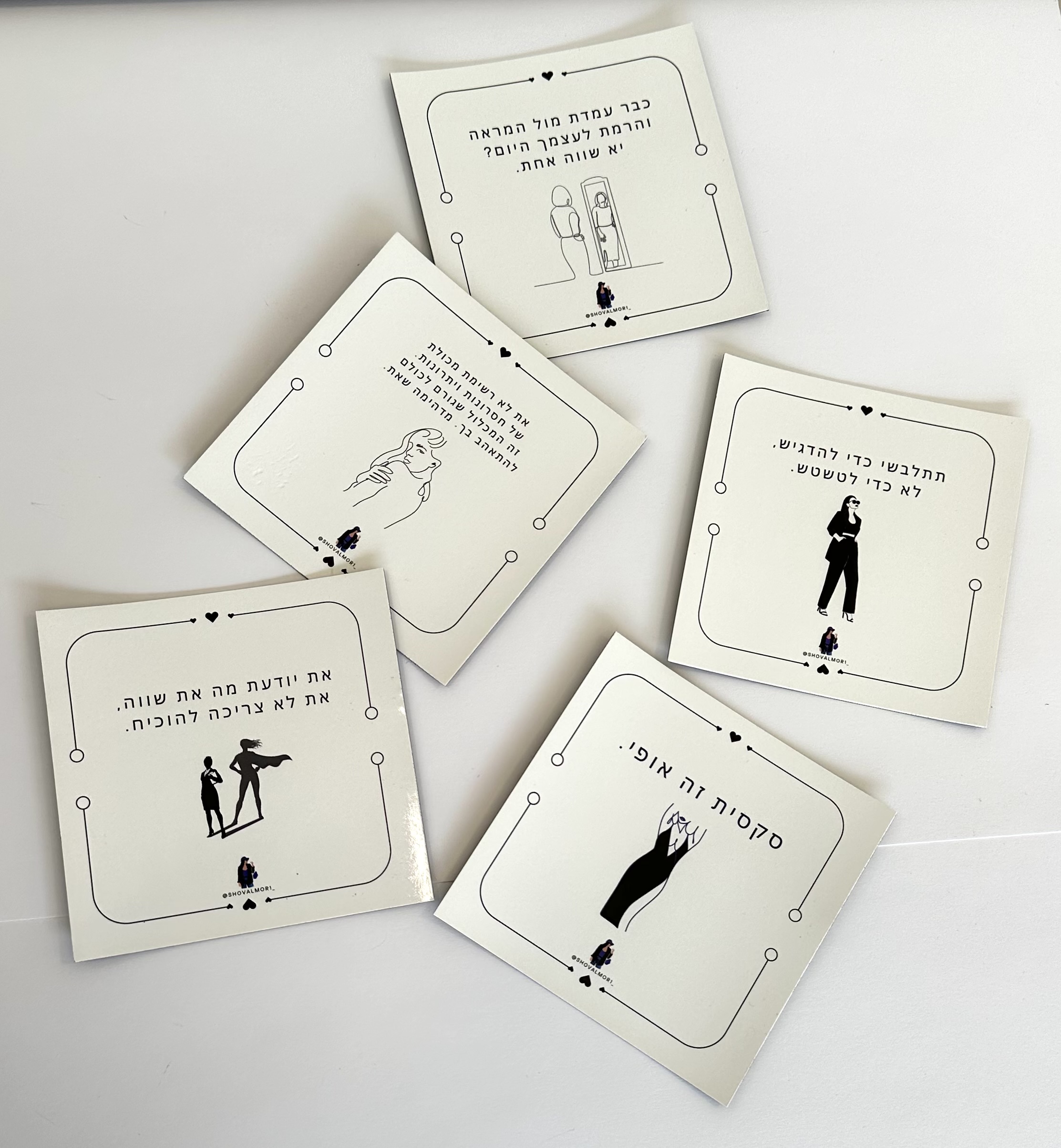 5מגנטים בגודל 10×10 ס”מ עם משפטי השראה מקלפי שומעת רגע (נבחרים באקראי).