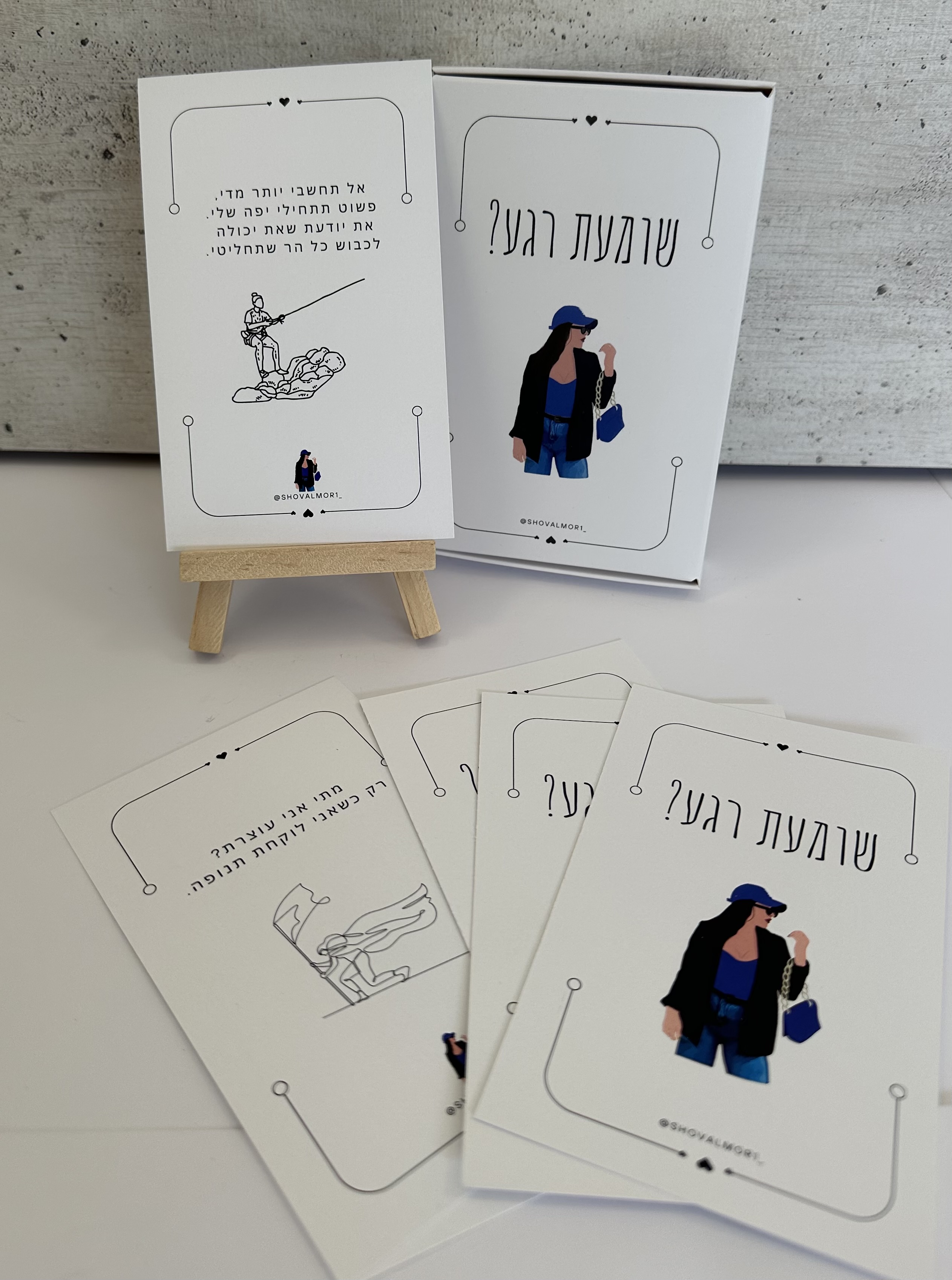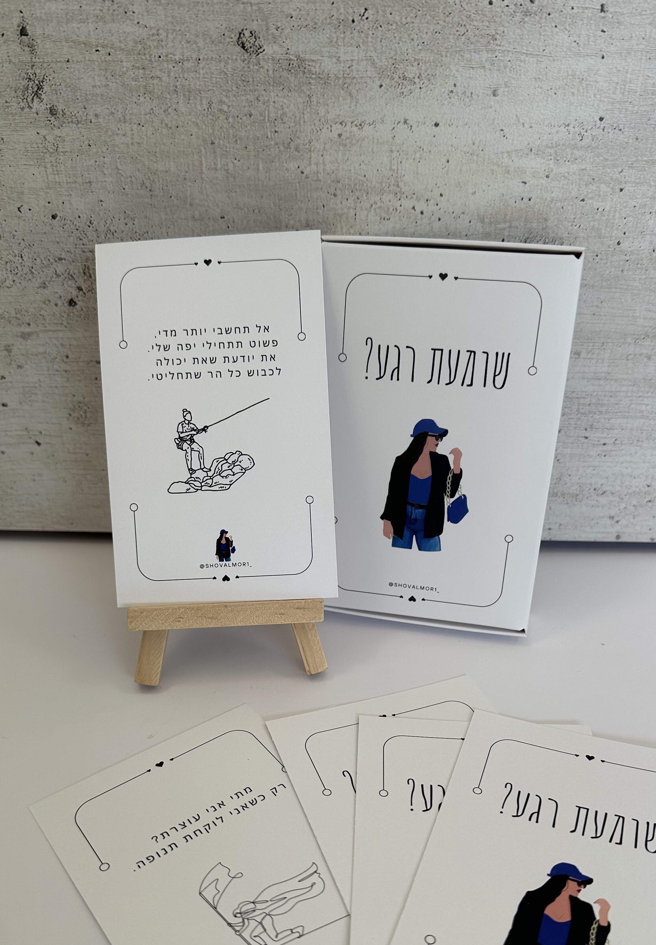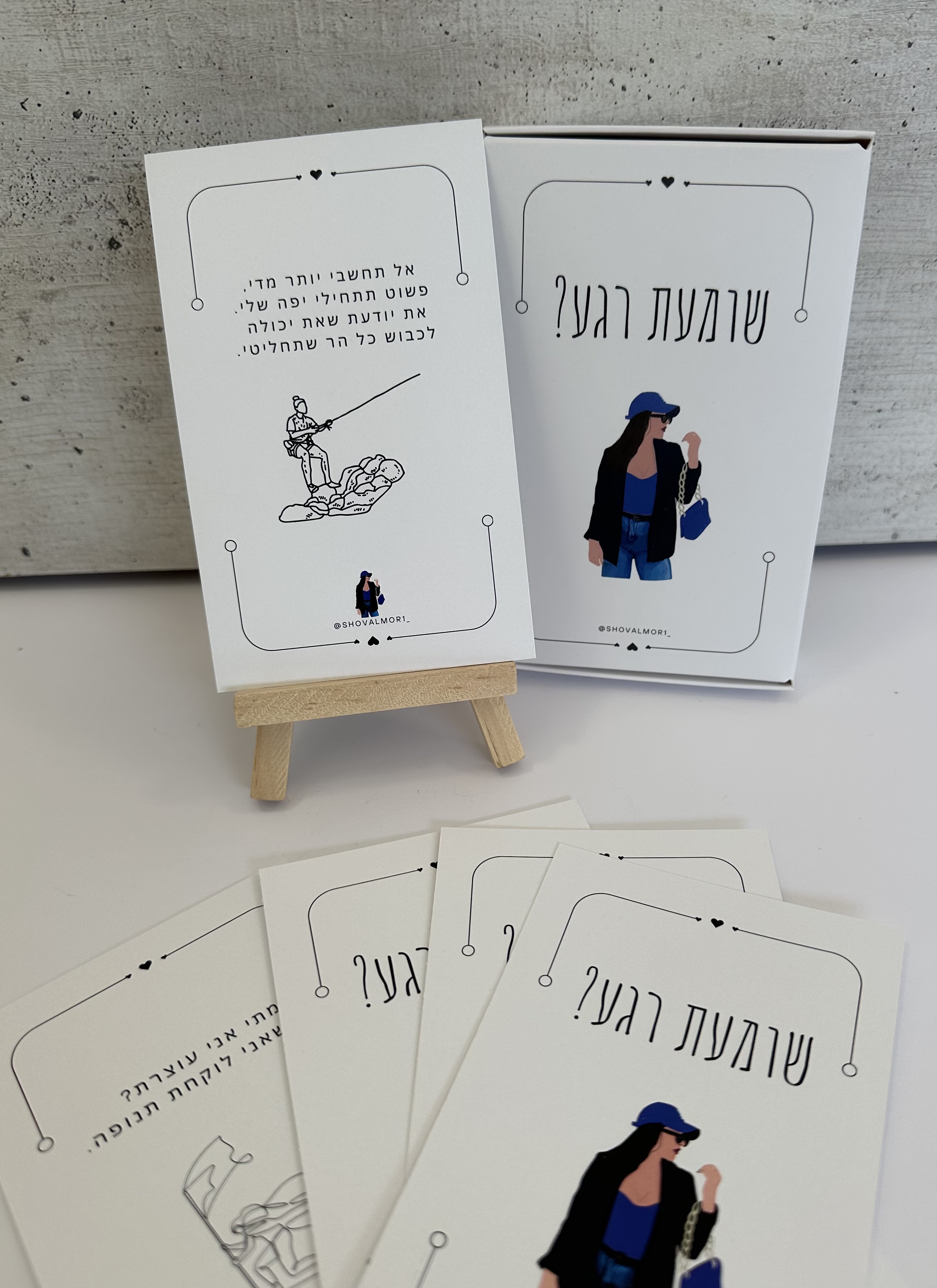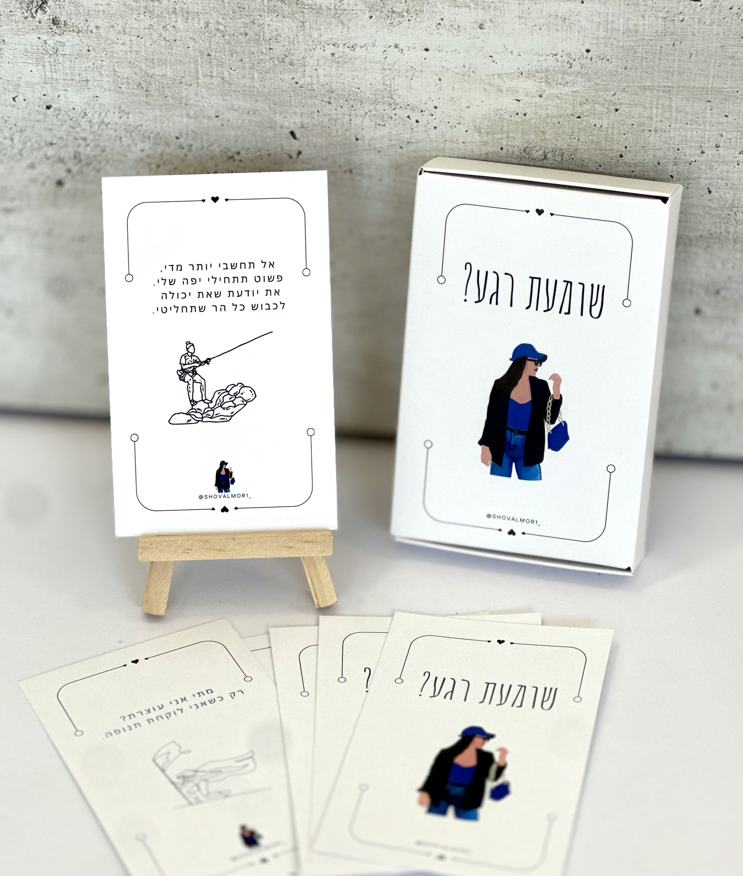 קלפי שומעת רגע נכתבו במטרה שתשלפי בכל יום קלף אחר שיהיה מרגש, מעצים ולפעמים גם מצחיק להעלות חיוך.