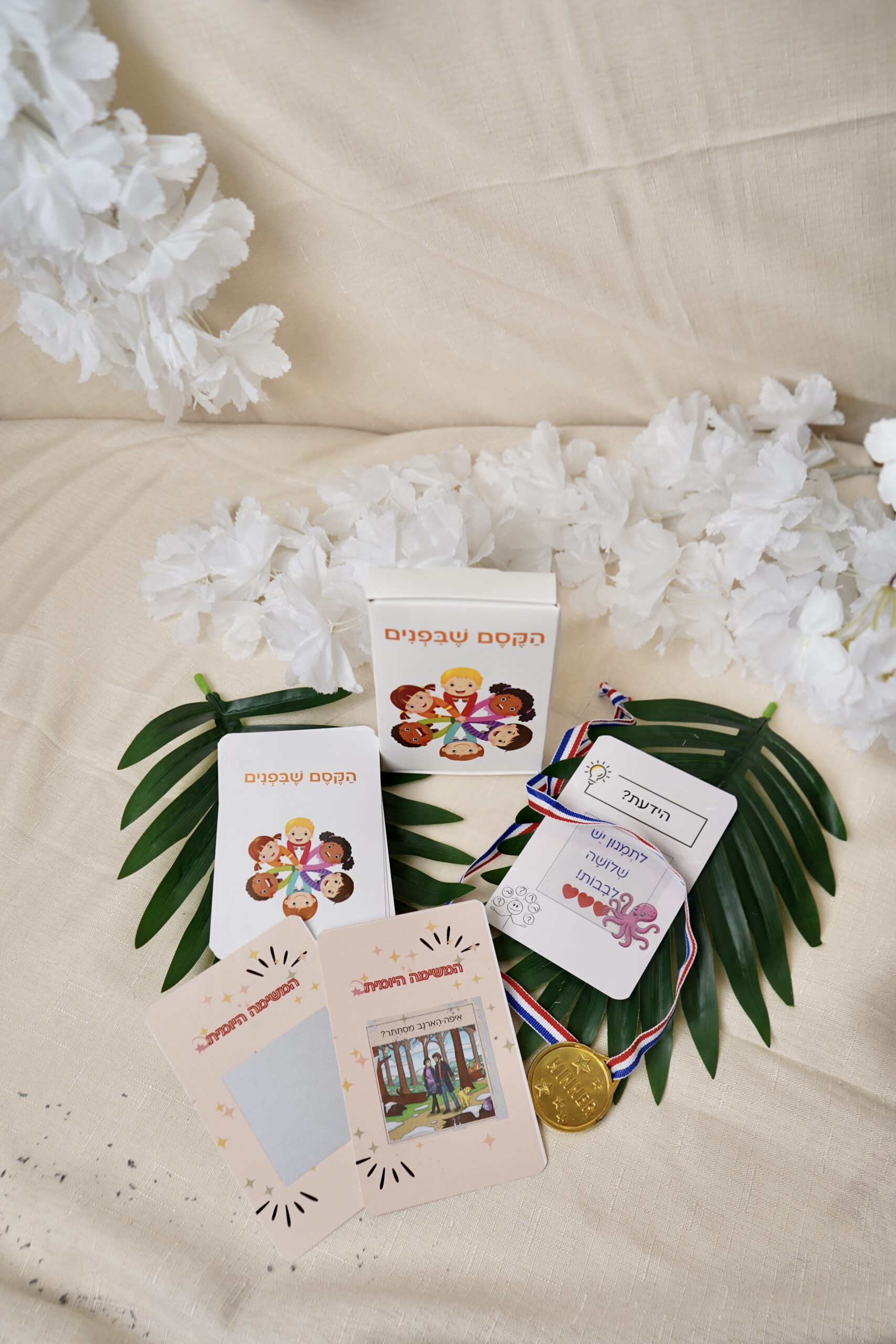 בקלפים תמצאו חידות, משימות מעניינות והעשרה. בחבילה 43 קלפים + מדליה לגירוד.
